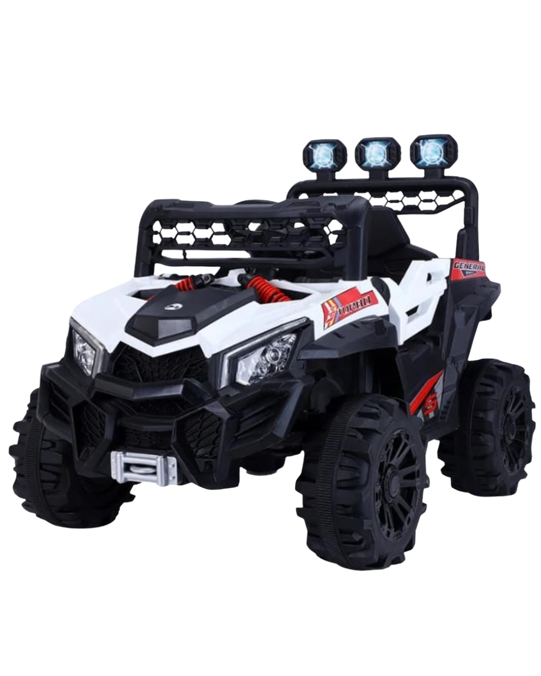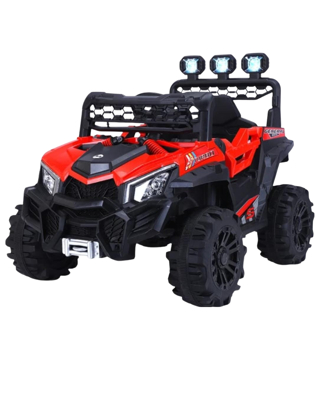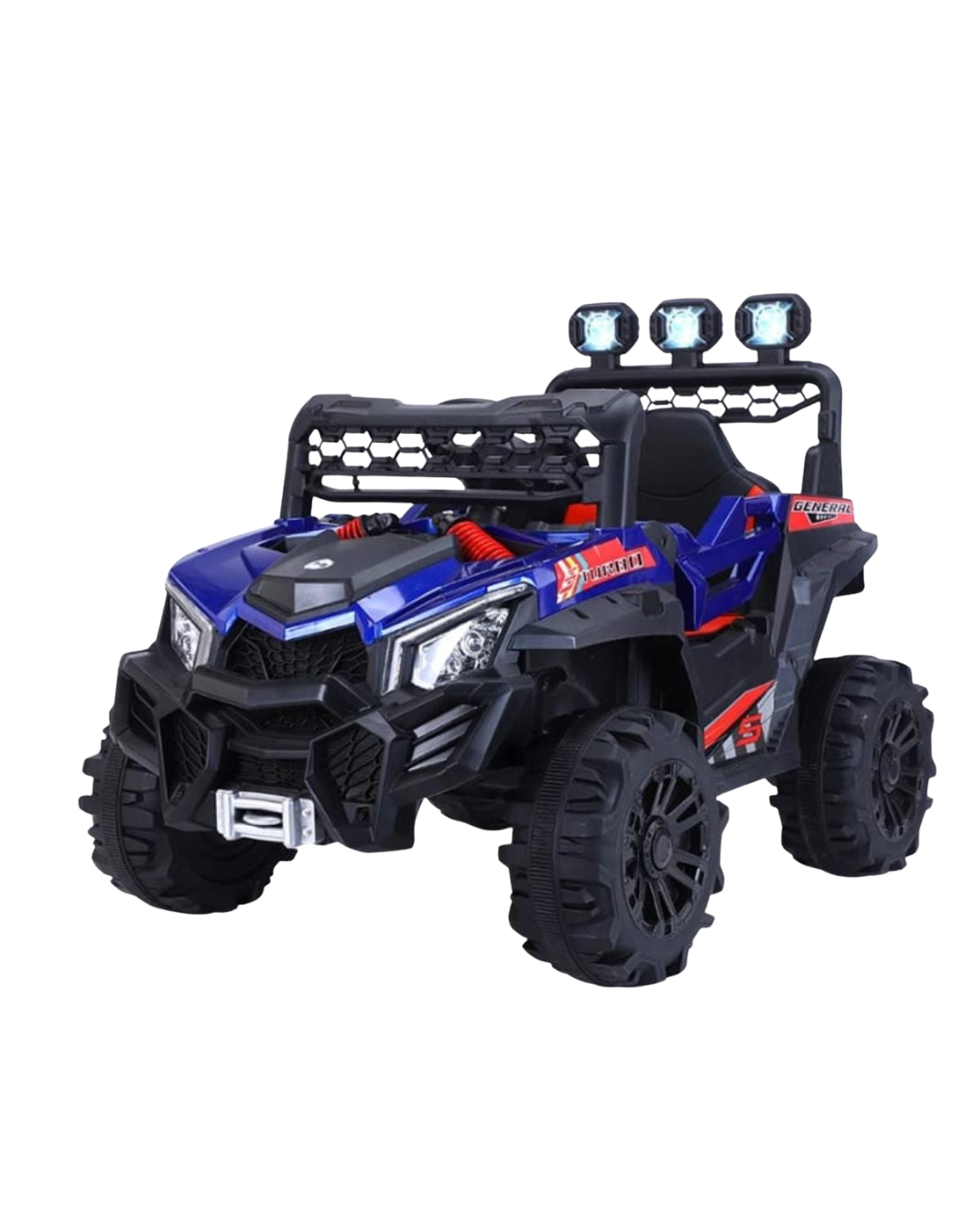 Carrito eléctrico infantil con diseño todoterreno inspirado en modelos reales, luces LED, estructura resistente y llantas robustas para una aventura segura y llena de diversión. Ideal para pequeños amantes de la acción