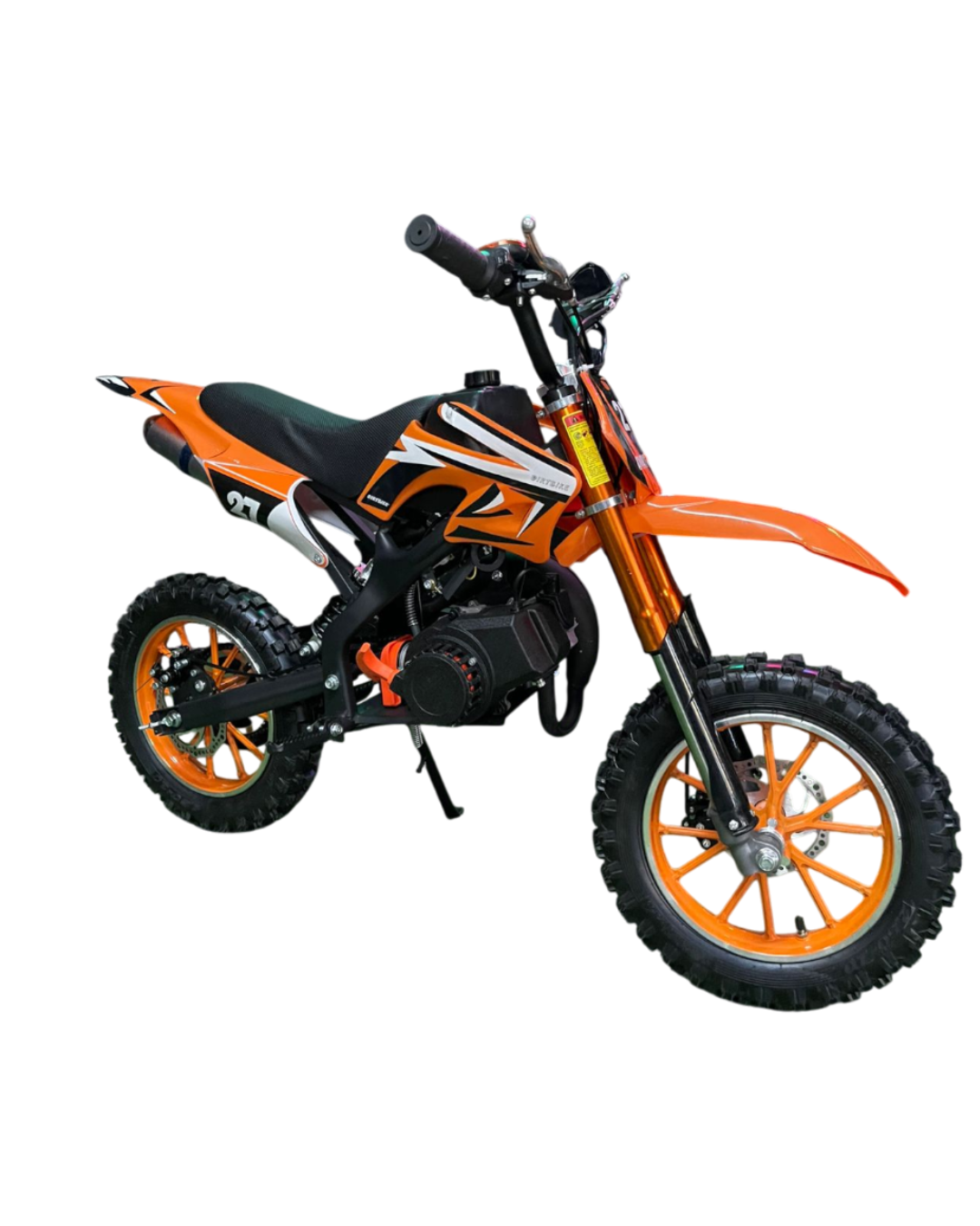 Moto de gasolina a dos tiempos, 50 CC es la opción ideal para pequeños aventureros que buscan emociones reales sobre ruedas. Con motores potentes y un diseño deportivo, ofrecen una aceleración rápida y un sonido auténtico que hará sentir la adrenalina en cada recorrido.