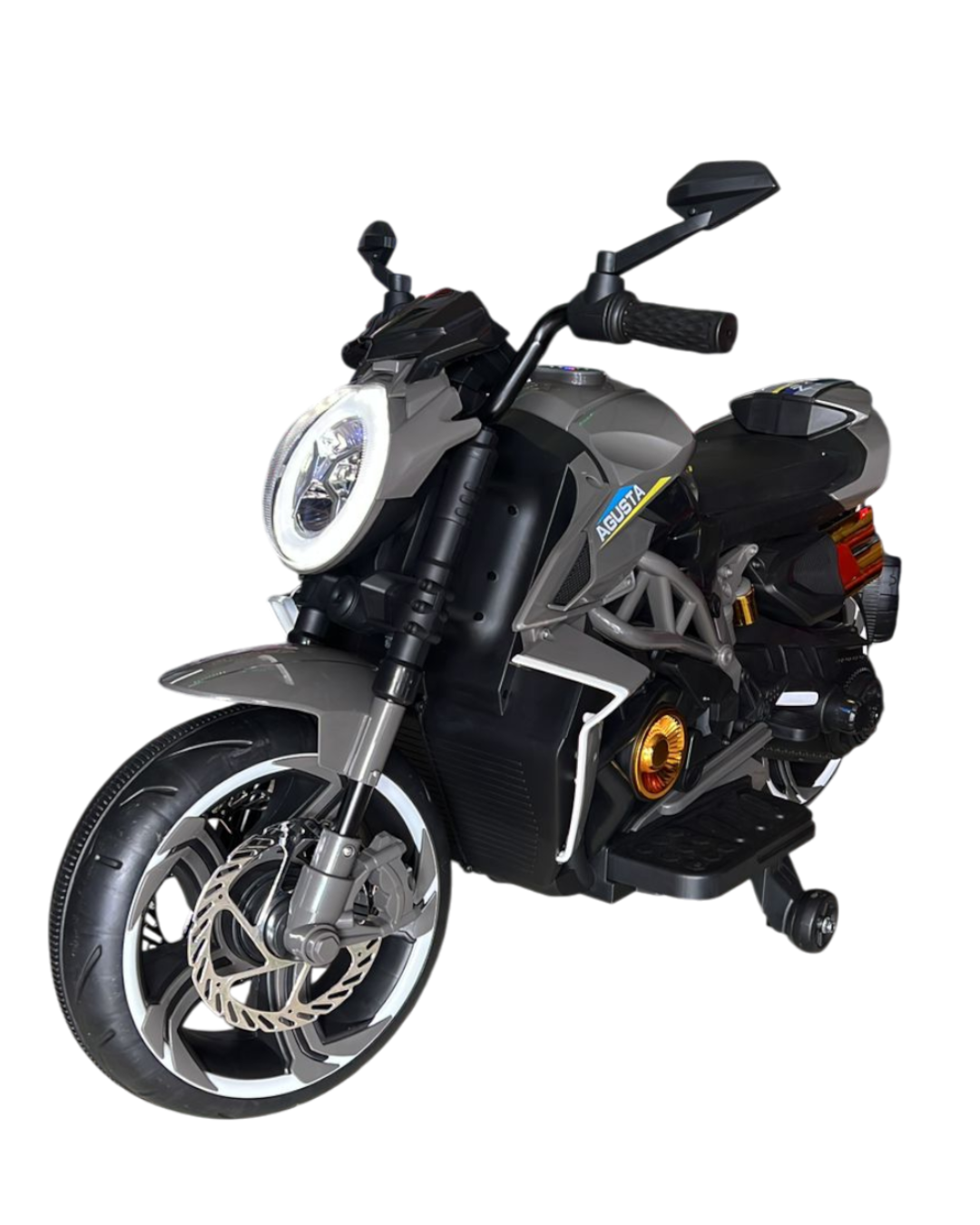 Incorpora luces LED en la rueda delantera y laterales, ruedas auxiliares para estabilidad y batería recargable (12V). Incluye sonidos y música para una experiencia de manejo divertida.